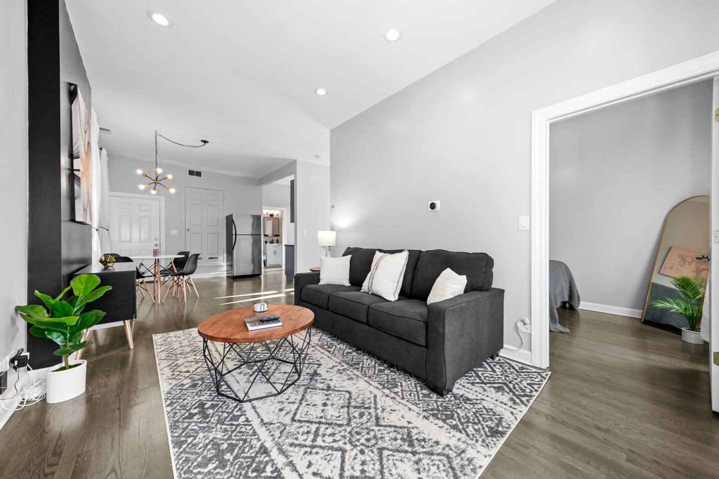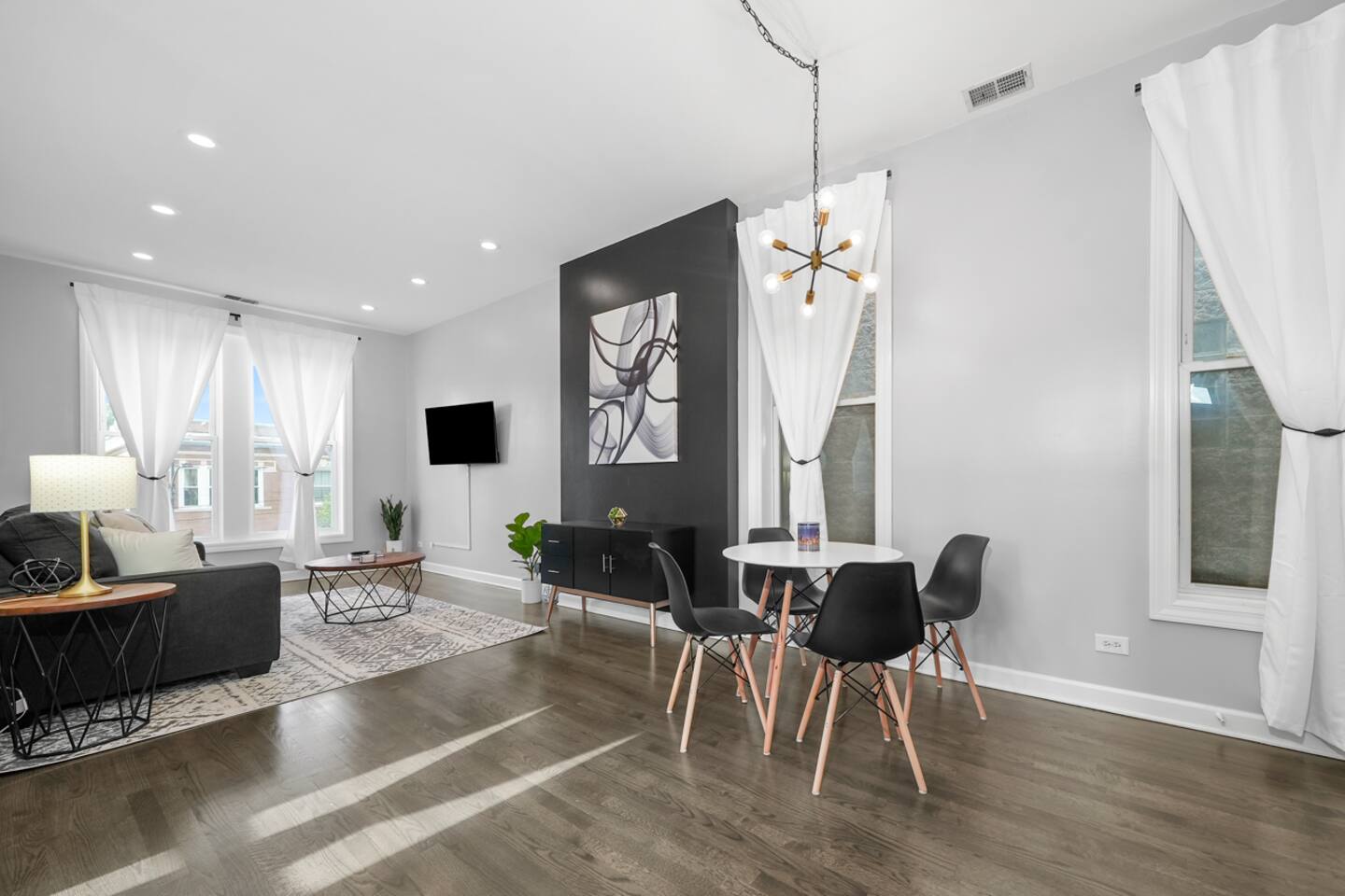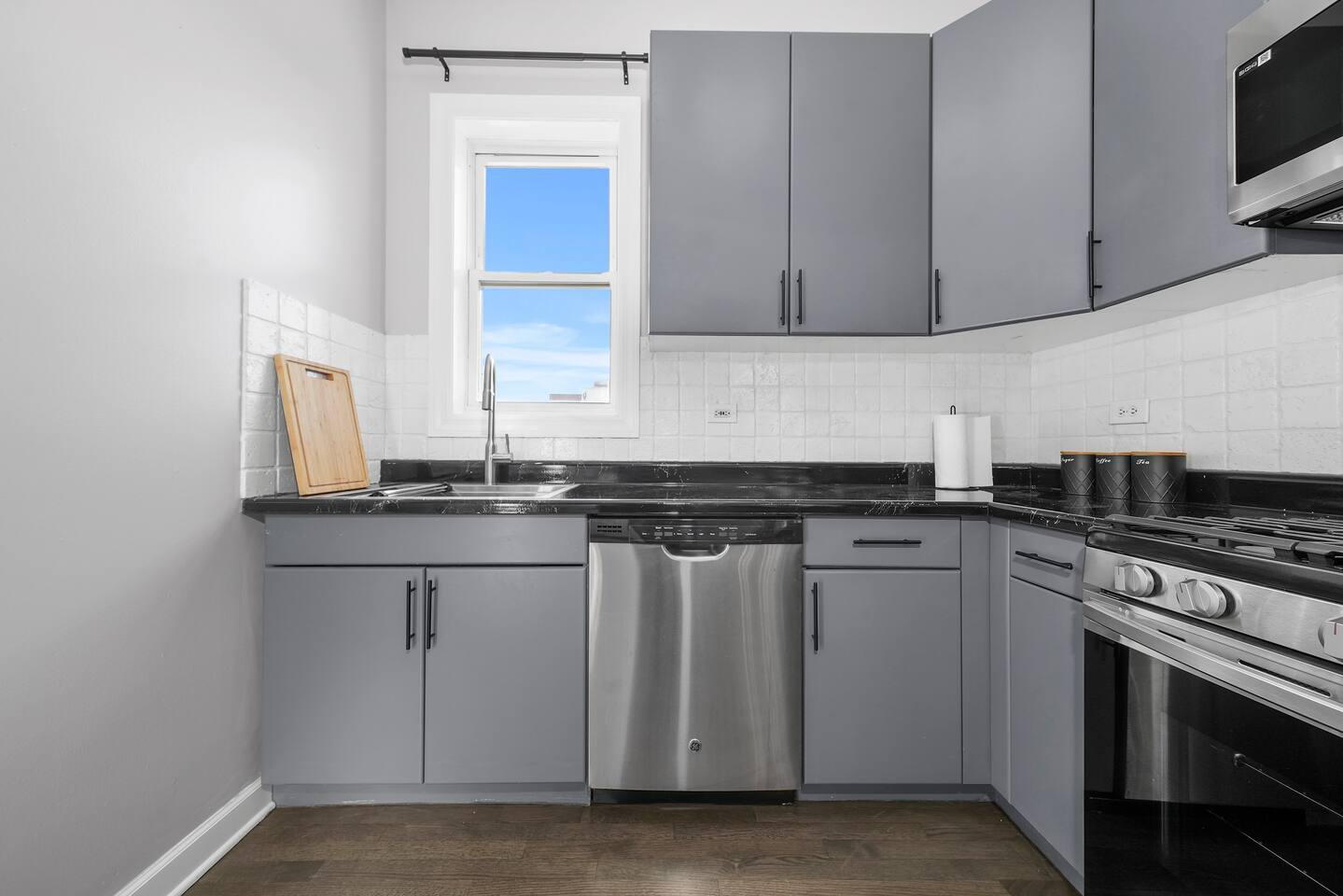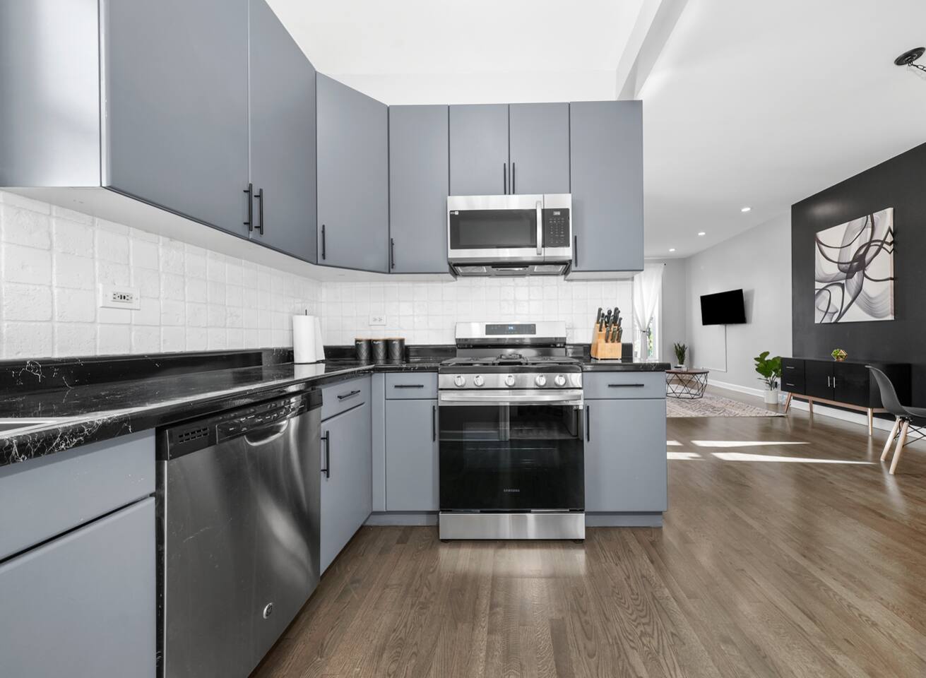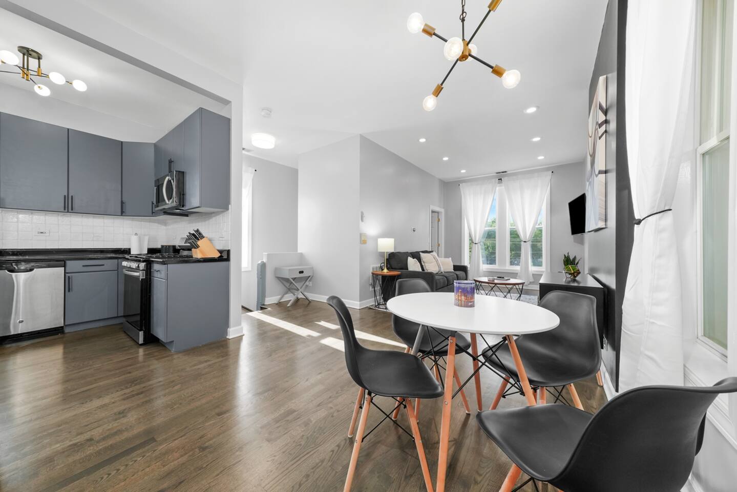 Every aspect of this apartment has been thought out to provide you a cozy modern pad in the city. While the home is equipped to host 4 people, we think the perfect group size is 1-2. We're happy to host all 4, but keep in mind it will be a little cozy. Is that a cloud you're sleeping on? Nope, that's just the memory foam mattress that we picked out. Even the pull out couch come equipped with a memory foam mattress. So no need to draw straws for who gets the couch, because every bed is set up to provide a great night sleep! Sure, eating at the nicest restaurant in town can be fun., but sometimes we all need a home cooked meal. That's why our kitchen is fully stocked with all the essentials you'll need to cook; not to mention, Mariano's is just down the street.